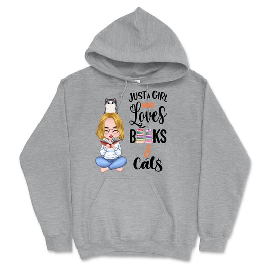 Personalized Hoodie & Sweatshirt - Girl Loves Books & Cat