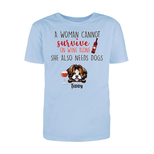 Personalized T-Shirt - Woman Can't Survive On Wine Also Needs Dogs